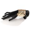 Браслет смотрится очень элегантно. Без застежек, но не на очень крупную руку. Полукруглый, сжимается.