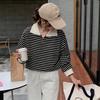 Свитшот с лацканами, женское тонкое осеннее пальто, полосатый топ с длинными рукавами, новая тенденция в виде рубашки поло на молнии
