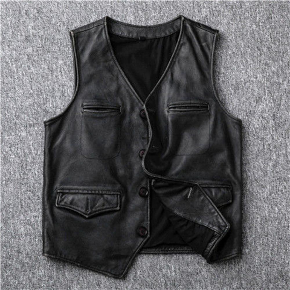 Инструментальная ретро старая кожаная жилетка первого слоя из коровьей кожи для мужчин, тонкая кожаная куртка