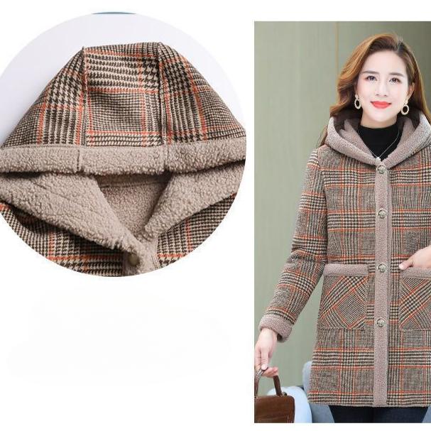 Женщины Добавить бархатное клетчатое пальто женские топы женские куртки средней длины с хлопковой подкладкой для женщин среднего возраста зимнее теплое пальто с капюшоном для защиты от холода