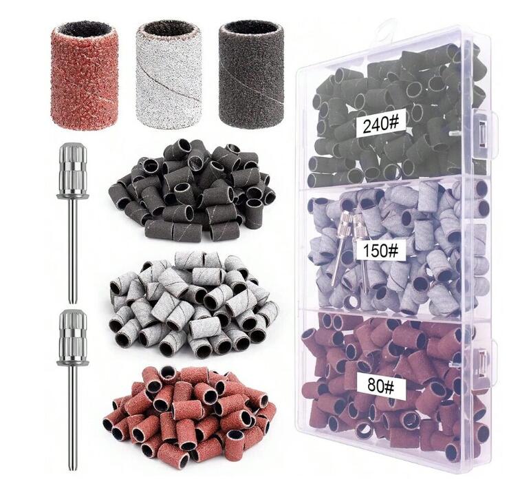 150 шт. цветных грубых шлифовальных лент для ногтей и 2 шт. насадок для сверления ногтей, набор из портативного ящика для хранения