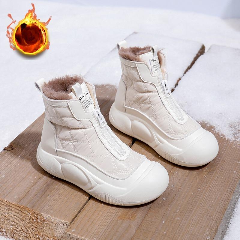 Женские высокие ботинки с плюшевой изоляцией из хлопка, зимние новые ботинки на толстой подошве, повседневные зимние ботинки для женщин