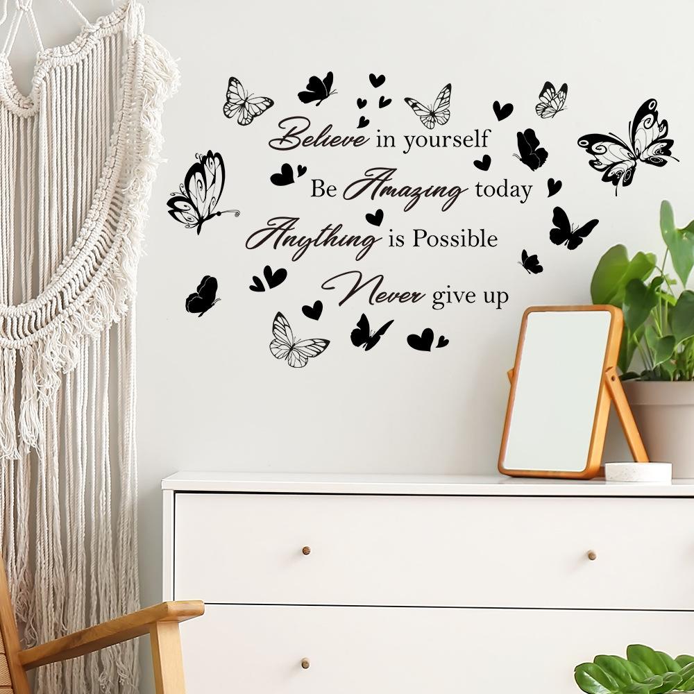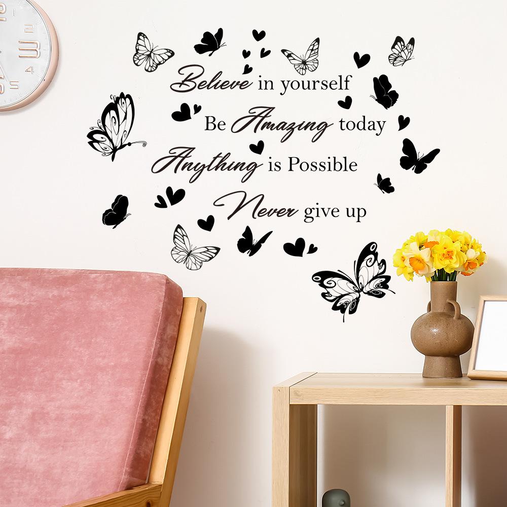 WZ9022 Английский Слоган Бабочка Любовь Спальня Гостиная Кабинет Домашнее Украшение Украшения Наклейка На Стену