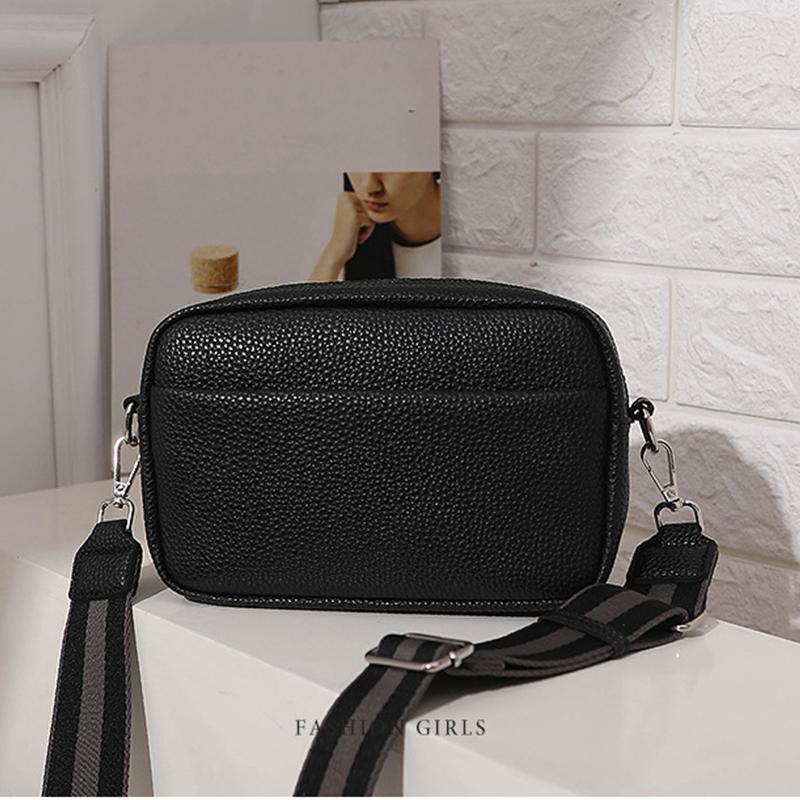 Новая однотонная многослойная женская сумка-слинг через плечо из искусственной кожи с широким ремнем