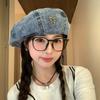 Джинсовый берет с бантом, женская ретро-шляпа художника-облачника с большой окружностью головы, показывающая лицо, маленькая шляпа с бутоном и звездчатым анисом