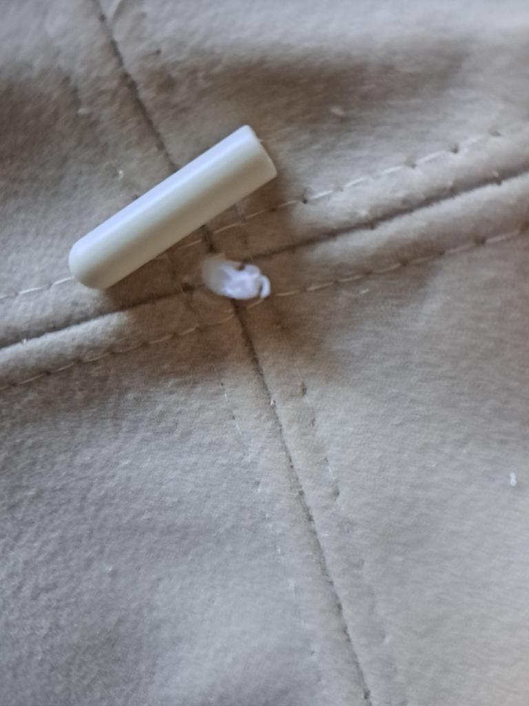 Не поняла ещё нравится он мне или нет, буду ли одевать. Но пластиковая "антенка" на макушке берета, которая была приклеена, лежала отдельно в пакете. И теперь по центру берета торчит жёсткий пропитанный клеем столбик
