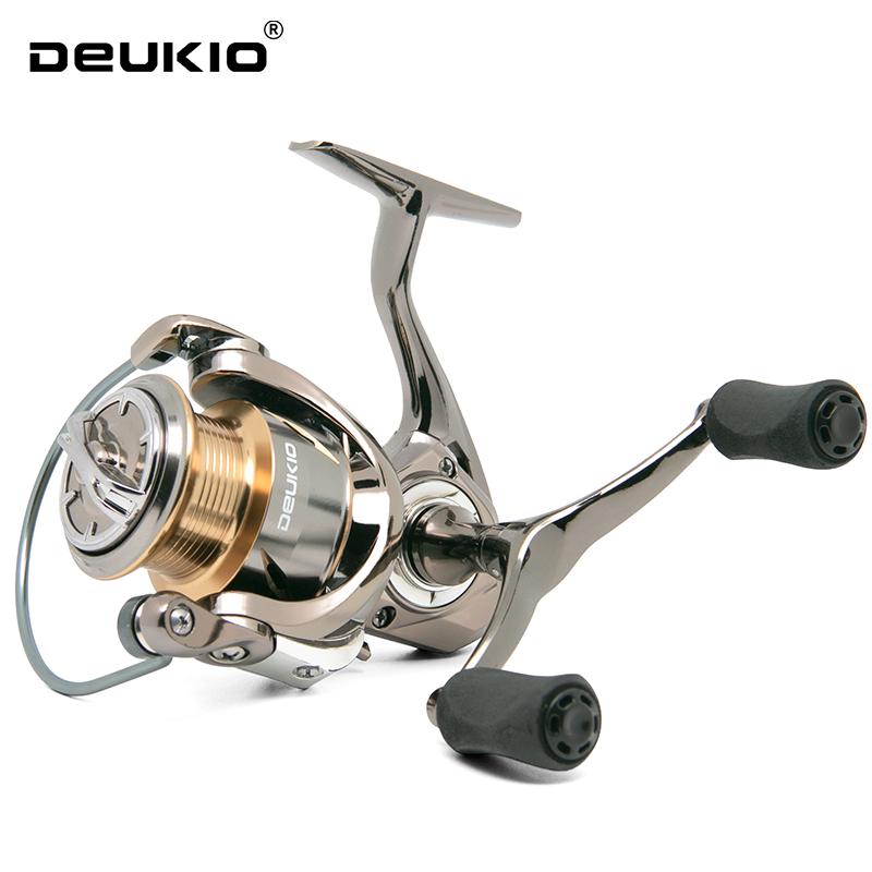 DEUKIO Новая цельнометаллическая спиннинговая катушка с двойной ручкой, 5.6:1 Передаточное отношение, 17 фунтов макс. сопротивление, шпуля с ЧПУ, рыболовная катушка для пресной и соленой воды