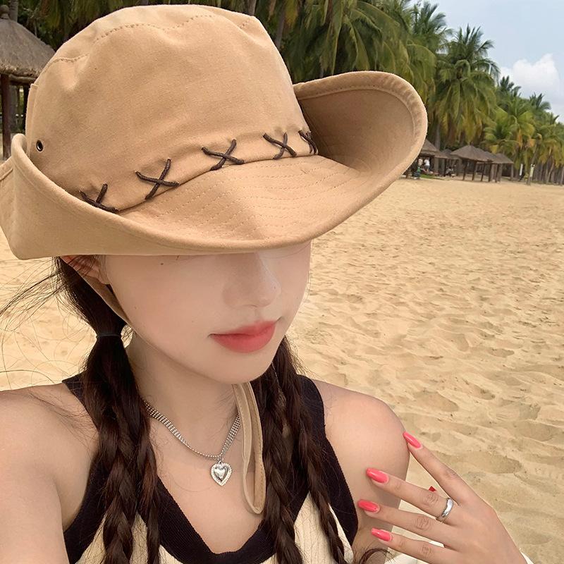 Ковбойская шляпа в стиле вестерн, женская летняя шляпа с большими полями для кемпинга, защита от ультрафиолета, шляпа-ведро с большой окружностью головы, солнцезащитная шляпа