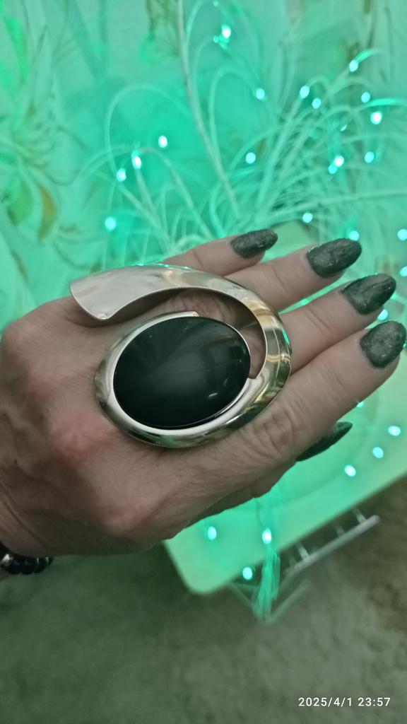 ✨✨✨Просто огромное кольцо геометрической формы. Кольцо разъёмное, так что размер универсальный. Выполнено из бижутерного сплава под серебро. Имитация камня, заявлена смола, но похоже на пластик. Заказала как дополнение к набору из колье и браслета ( ещё не выставляла). Смотрится интересно, с таким кольцом точно незамеченной не останетесь 🤣👍. Товаром довольна, кто любит крупные кольца- это для вас😄😉.