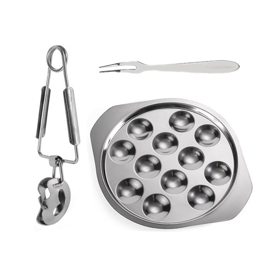 Металлическая посуда для морепродуктов, набор из нержавеющей стали для улиток, блюдо и щипцы, тарелка для выпечки улиток с зажимами, кухонные принадлежности