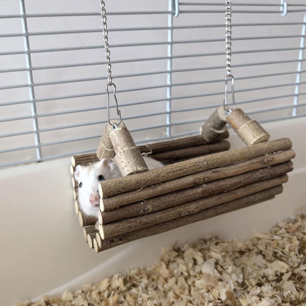 Качели для хомяков из натурального дерева. Идеальное место для упражнений и отдыха для хомяков, мышей и песчанок, удобное для мелких грызунов.