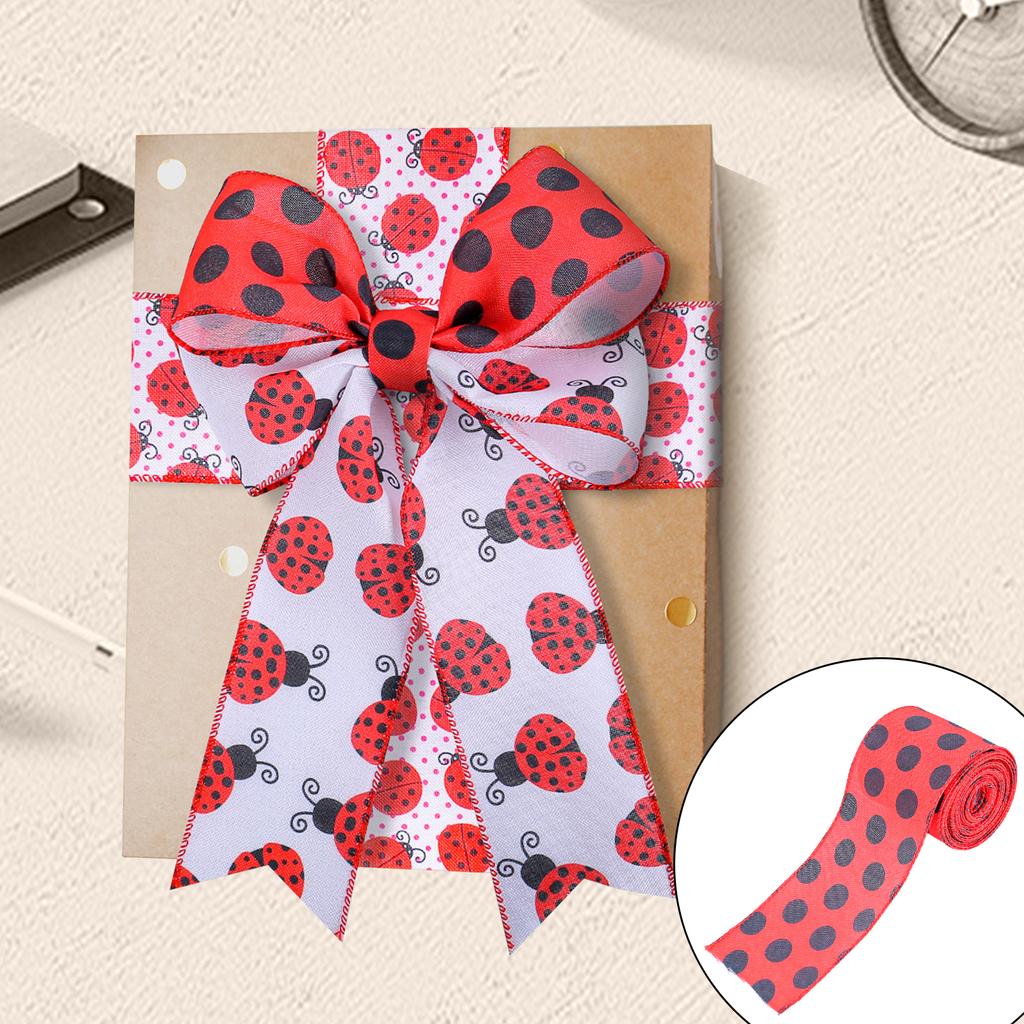 Ленты с божьими коровками 2,5" x 5,5 ярдов Лента для упаковки с проволочной окантовкой в виде божьей коровки Лента с проволочной окантовкой в красный горошек Лента для рукоделия в красный горошек