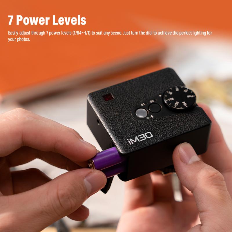 Накамерная вспышка iM30 Mini Flash от Godox идеально подходит для тех, кому нужно простое решение для освещения.. Эта полностью ручная вспышка с минималистичным дизайном совместима с различными моделями камер с универсальным горячим башмаком.. iM30 имеет ведущее число 49,2' при ISO 100 и оснащен фиксированной головкой с цветовой температурой дневного света 6500K.. Уровень выходной мощности вспышки можно регулировать вручную от 1/64 до полной мощности за семь шагов.. Это компактное устройство способно обеспечить 230 вспышек на полной мощности и перезарядится за 3,6 секунды.. iM30 — отличный инструмент для фотографов, работающих над небольшими предметными снимками или портретами.. Стоит отметить, что его элегантный дизайн визуально добавит эстетики вашей камере.. Главным преимуществом вспышки является ее портативный и элегантный корпус, который можно брать с собой и хранить где угодно.