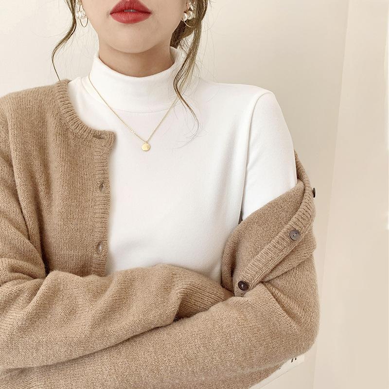 Женская рубашка из немецкого бархата с воротником-получерепахой, универсальная, на осень и зиму, с длинными рукавами, облегающий белый бархатный топ из белого бархата — купить товар онлайн с бесплатной доставкой по всему миру!