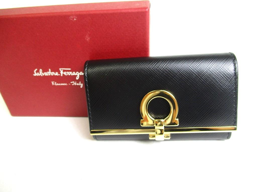Оригинальный чехол для ключей Salvatore Ferragamo Gancini из черной кожи с золотым покрытием H/W 6Pics #a431 восстановленный — купить товар онлайн с бесплатной доставкой до всему миру!