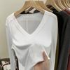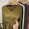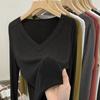 Футболка с V-образным вырезом и длинными рукавами для женщин на весну и осень, новый дизайн, сдержанная рубашка с низом, свободный и универсальный топ на раннюю весну