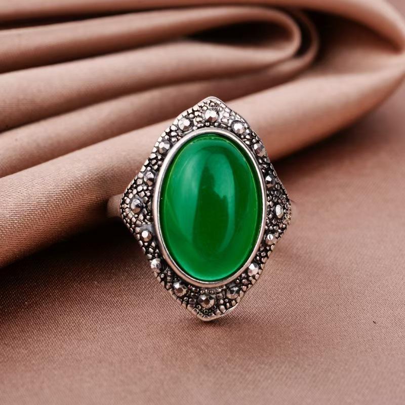 Кольцо из благородного камня в стиле ретро с имитацией халцедона и граната, женское, имитация тайского серебра, живое кольцо — купить товар онлайн с бесплатной доставкой по всему миру!