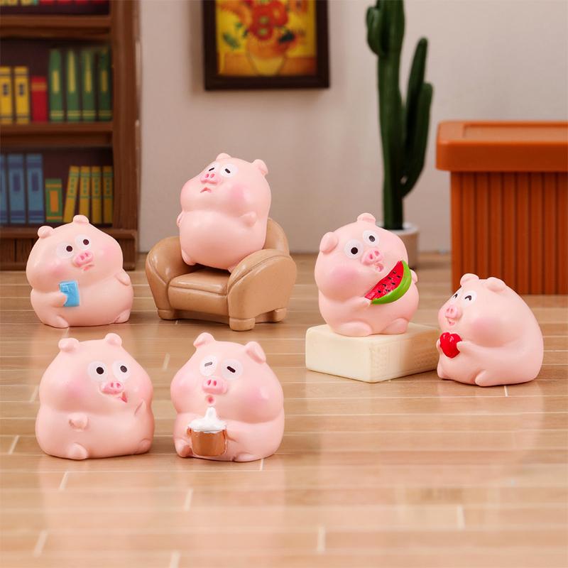 Статуэтки Миниатюры Мультфильм Милый Поросенок Микро Ландшафт Украшения Для Украшения Дома Декор Комнаты Настольные Украшения Автомобиля