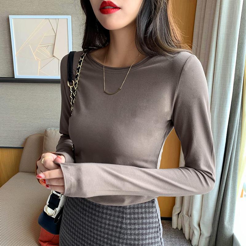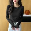 Белая футболка с длинными рукавами для женщин, весна и осень, женская, новая модная студенческая футболка из чистого хлопка, однотонная, с загнутыми краями, верхняя часть