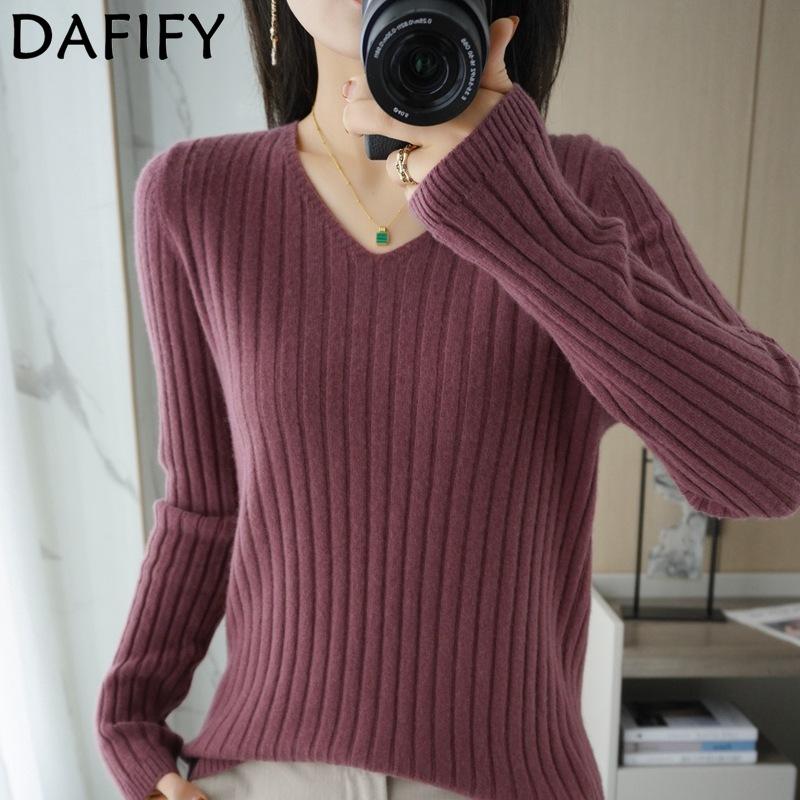 DAFIFY Женская мода повседневная осень-зима однотонный принт длинный рукав V-образный вырез свитера