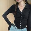Дизайнерская футболка-поло Niche с длинными рукавами и эластичным воротником для женщин на осень, утягивающая внутренняя многослойность, кардиган в стиле Pure Lust, нижняя часть верха