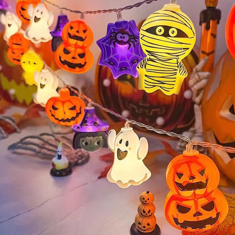 Гирлянда в виде тыквы на Хэллоуин, гирлянда в виде летучей мыши и паука, работающая от батареек, для вечеринки на Хэллоуин на открытом воздухе, декоративная гирлянда, ночник