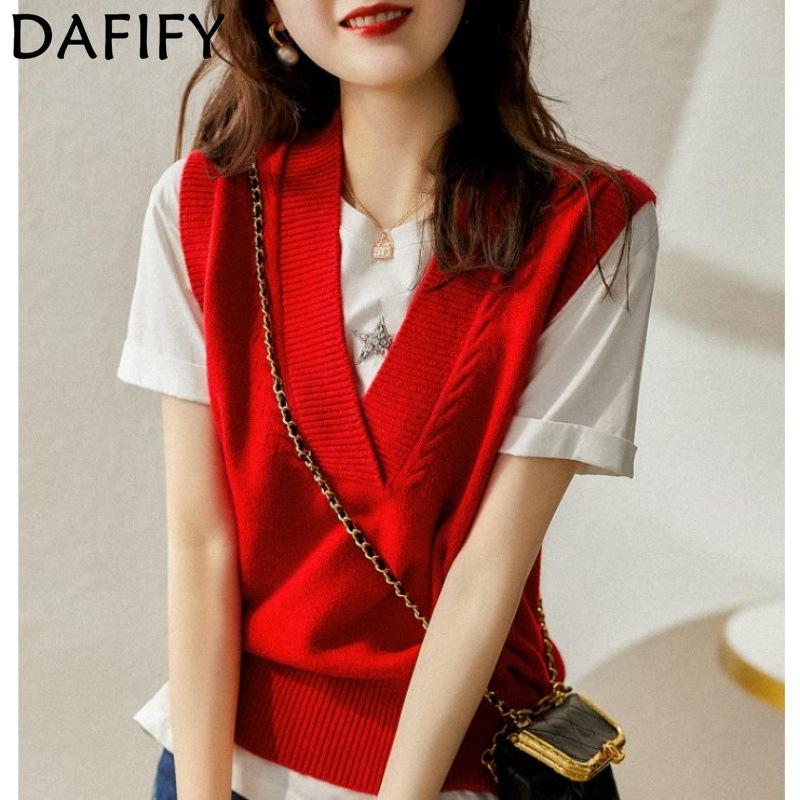 DAFIFY Женская мода повседневная осень-зима однотонные принтованные свитера без рукавов с V-образным вырезом
