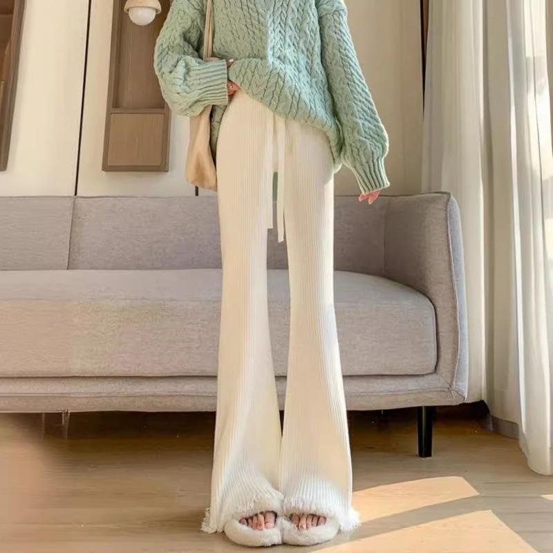 Женские осенне-зимние трикотажные утолщенные прямые брюки с высокой талией — купить товар онлайн с бесплатной доставкой по всему миру!