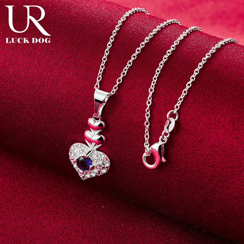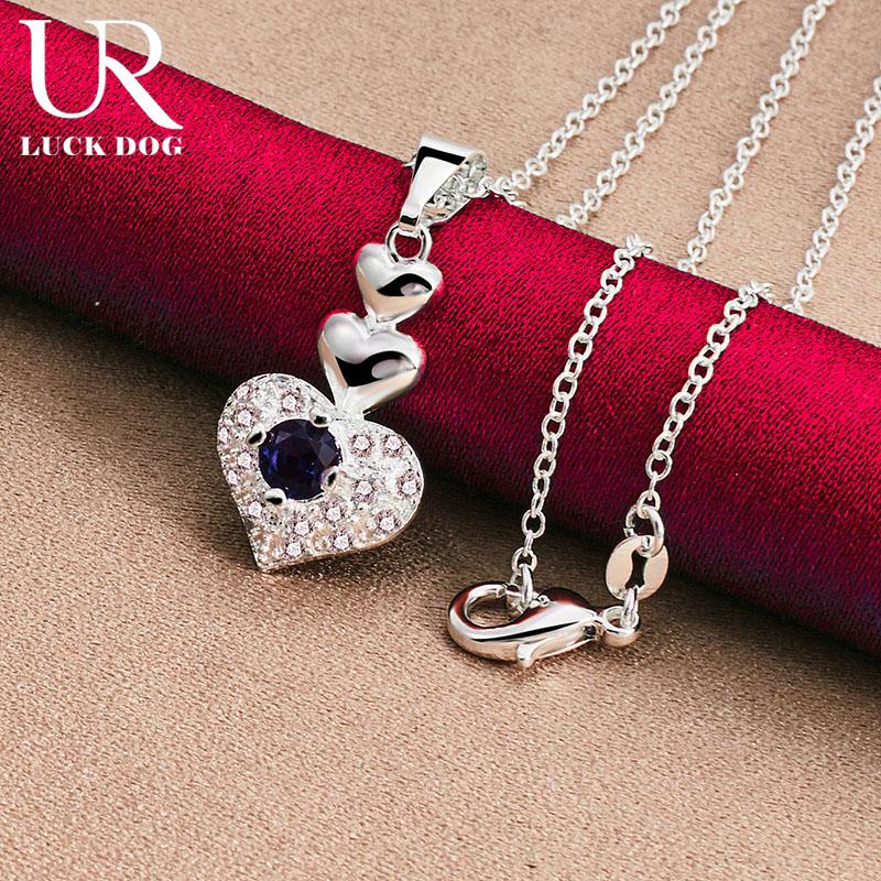 Ожерелье с подвеской в форме сердца из стерлингового серебра 925 пробы с синим цирконием, модные свадебные украшения