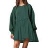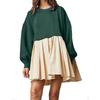 Осеннее новое свободное повседневное платье с длинным рукавом, женское элегантное лоскутное однотонное платье А-силуэта больших размеров, женское круглое шею, винтажное сексуальное короткое платье для вечеринки 25171