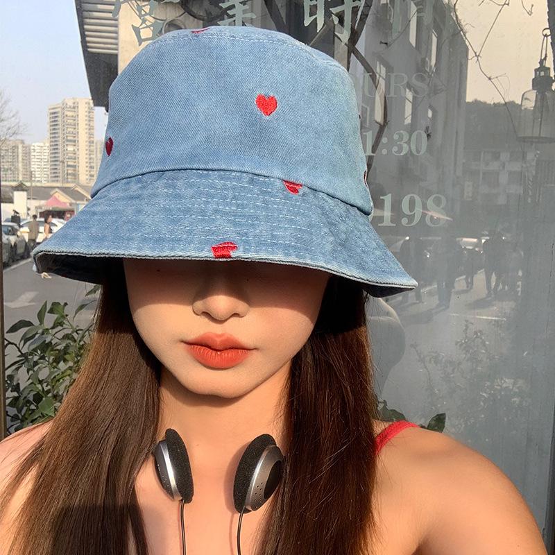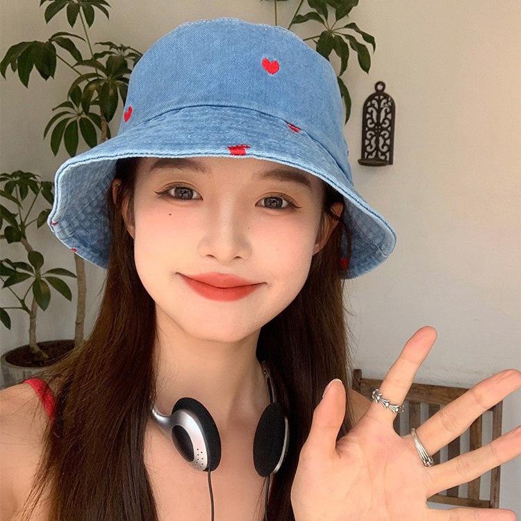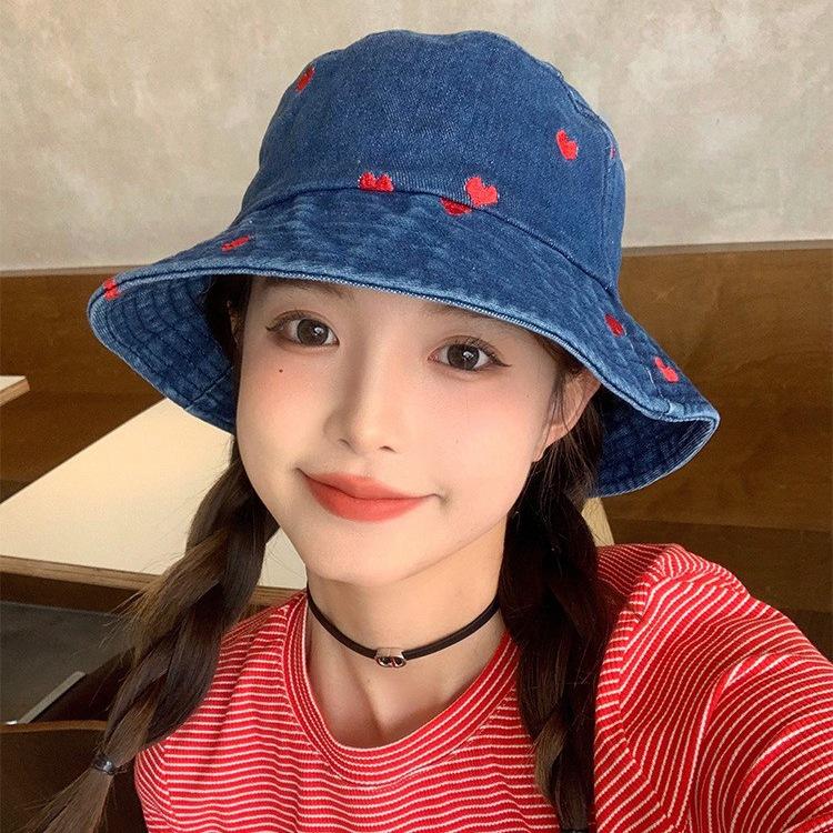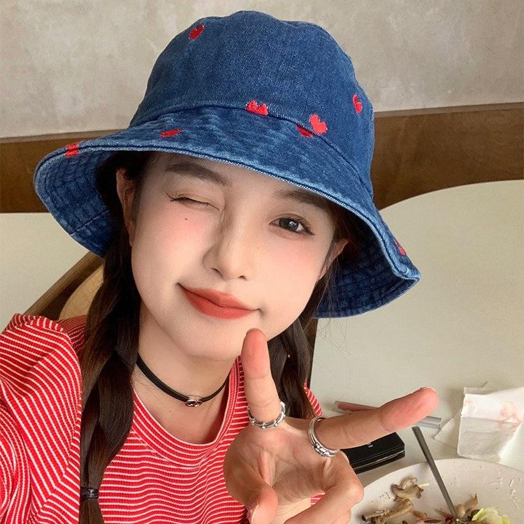 Вышитая любовь джинсовая шляпа рыбака детская весенне-летняя шляпа для лица маленький козырек от солнца шляпа для тазика