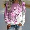 Элегантный женский топ с круглым вырезом и длинным рукавом, новая осенняя толстовка с длинным рукавом с 3D-цветочным принтом, свитшот, женская одежда больших размеров