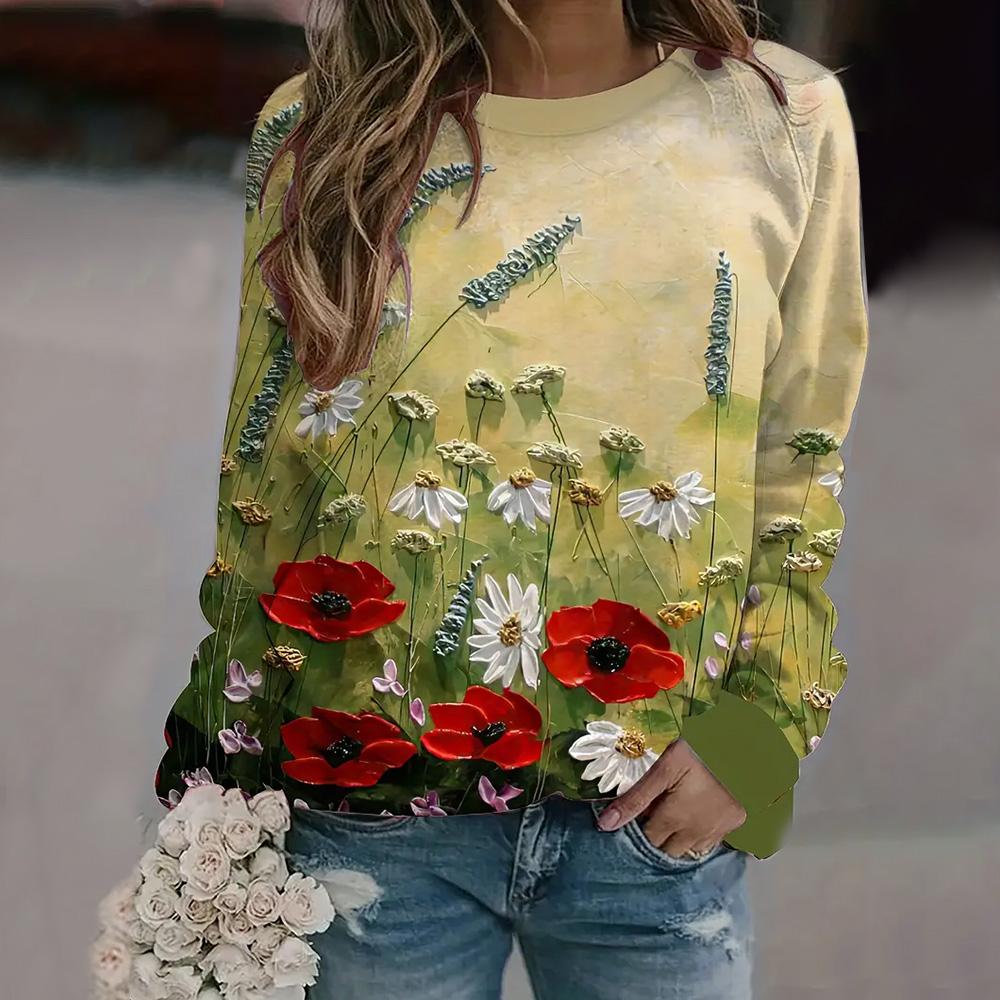 Элегантный женский топ с круглым вырезом и длинным рукавом, новая осенняя толстовка с длинным рукавом с 3D-цветочным принтом, свитшот, женская одежда больших размеров — купить товар онлайн с бесплатной доставкой по всему миру!