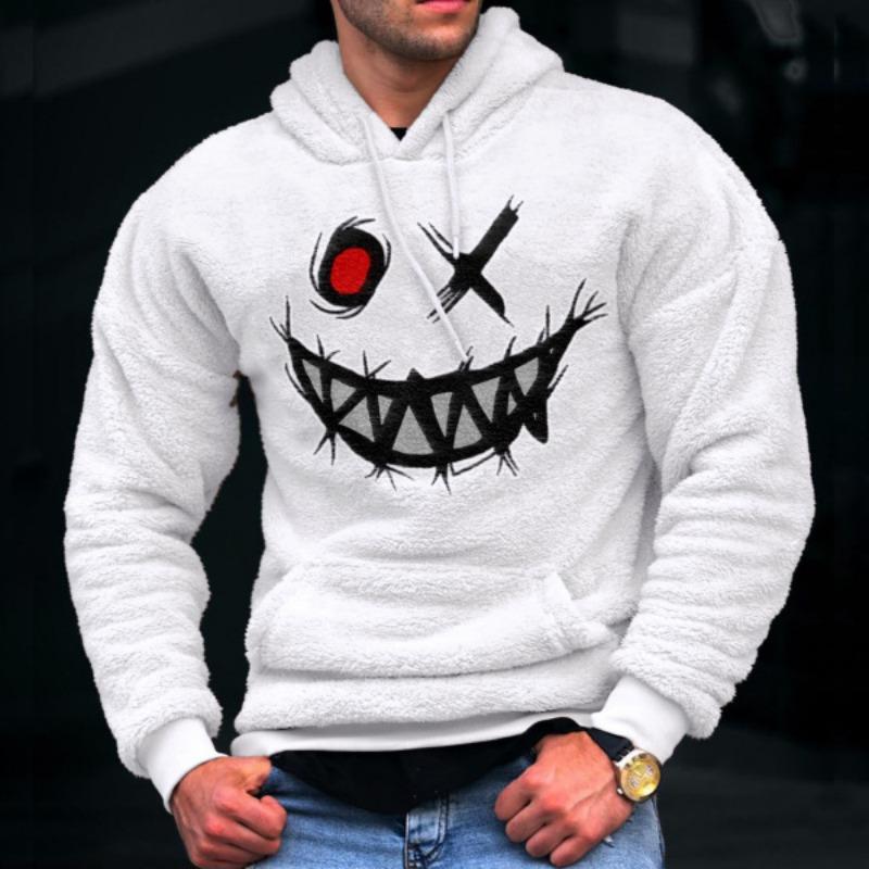 Осенне-зимняя толстовка с капюшоном из арктического бархата с вышитым смайликом, готовая толстовка