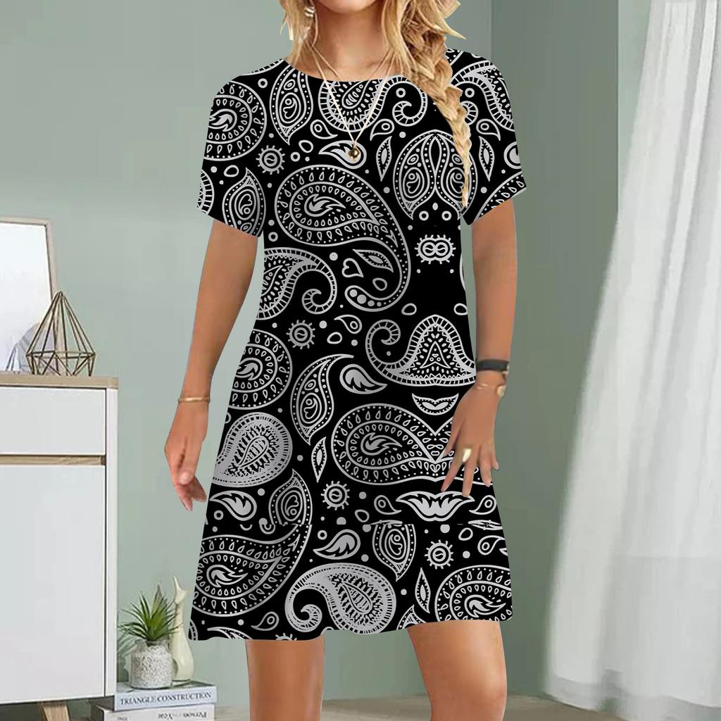 Женское повседневное платье Летние платья с принтом парамеция для женщин с круглым вырезом и коротким рукавом Платье больших размеров