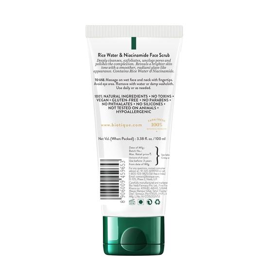 Biotique Rice Water & Niacinamide Deep Cleanse Gel Face Scrub для более гладкой, сияющей и яркой кожи | Glass Skin | Очищает поры | Для мужчин и женщин - 100 мл