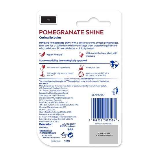 Бальзам для губ NIVEA Shine Caring, гранат, 4,8 г, красный