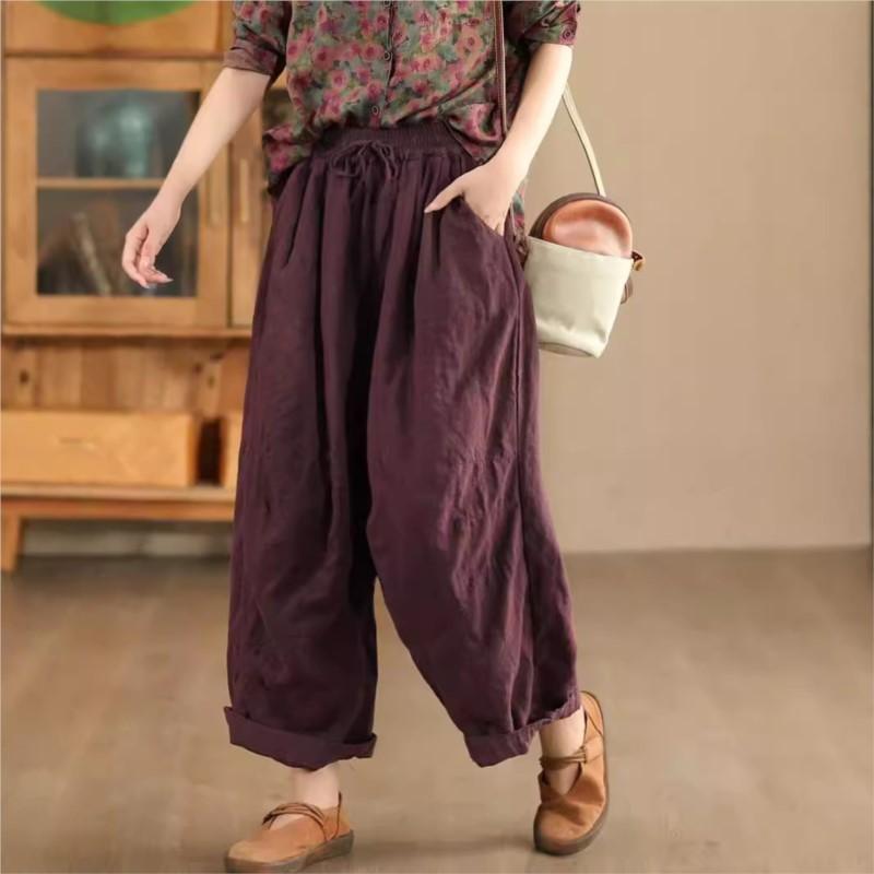 Johnature Женские осенние модные винтажные однотонные широкие брюки в китайском стиле с эластичной резинкой на талии — купить товар онлайн с бесплатной доставкой до всему миру!