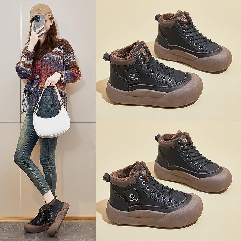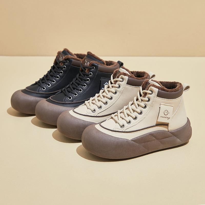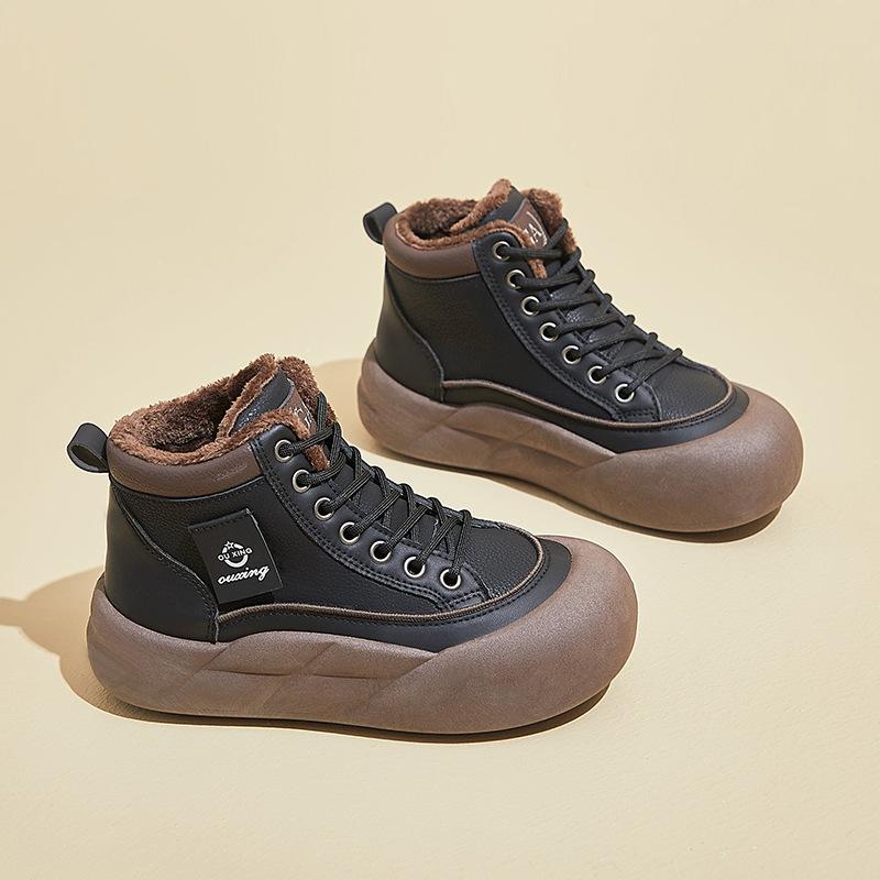 (Теплый искусственный мех внутри) Подкладка у зимних кроссовок для женщин выполнена из толстого плюша, теплый и пушистый плюш плотно облегает ноги, а теплые черные высокие кроссовки для женщин не позволяют холодному воздуху проникать в ноги.