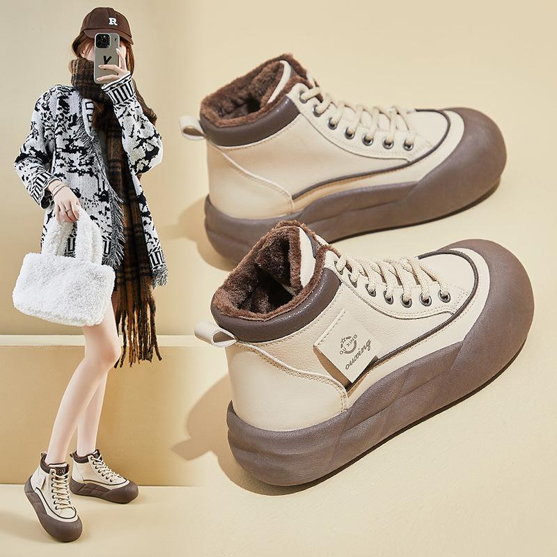 (Подходит для зимнего сочетания) Высокие замшевые кроссовки подойдут для самых разных сочетаний, будь то свитера, куртки, пуховики, эти модные зимние женские кроссовки можно идеально сочетать, что позволит вам носить одежду разного стиля.