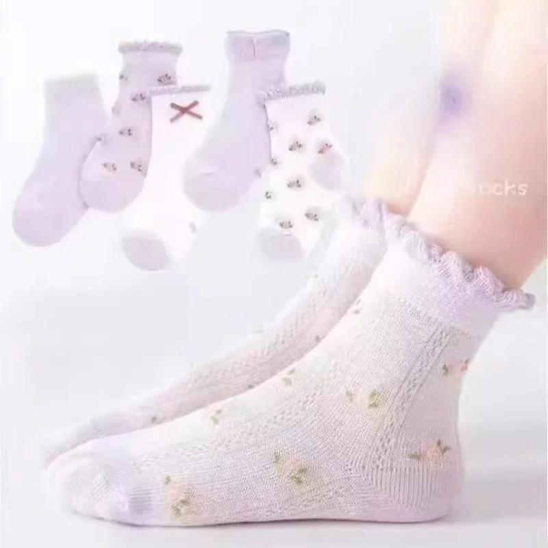 5 пар/лот, детские мягкие хлопковые носки, корейские носки с цветочным принтом и сердечками для маленьких девочек, осенне-зимние теплые детские носки среднего размера