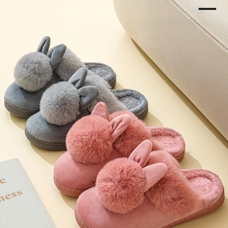 Женские зимние домашние домашние тапочки с меховыми кроличьими ушками Мягкая удобная обувь