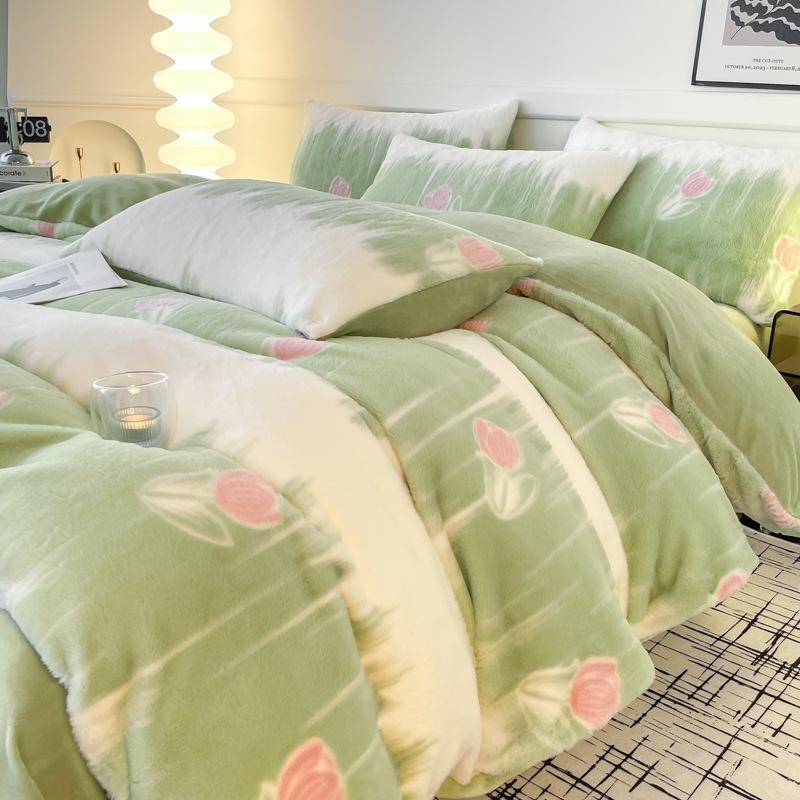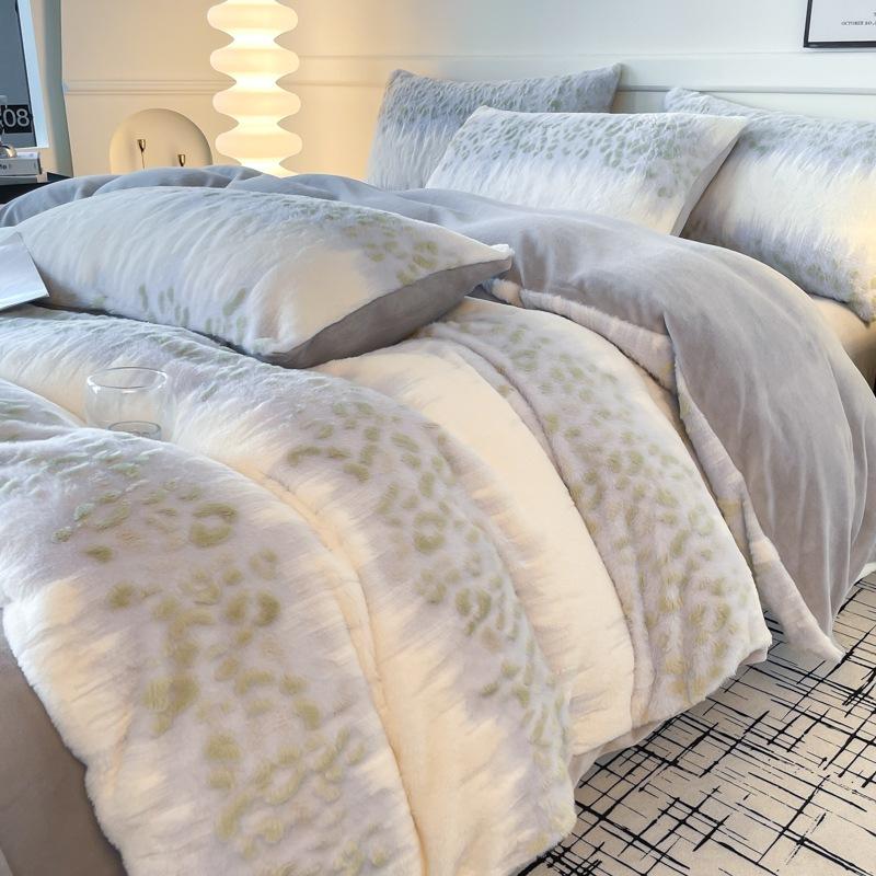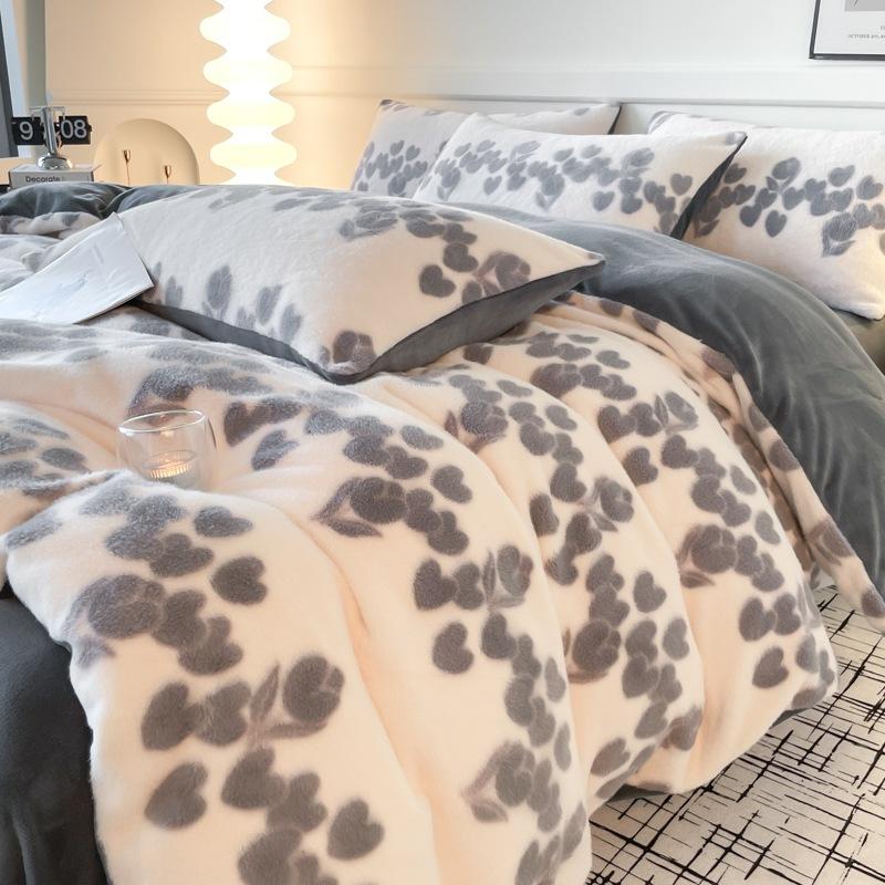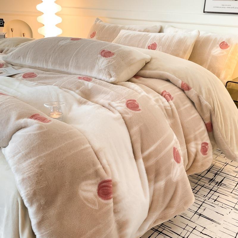 Комплект из четырех предметов из молочного флиса, утепленное двухстороннее флисовое одеяло, простыня