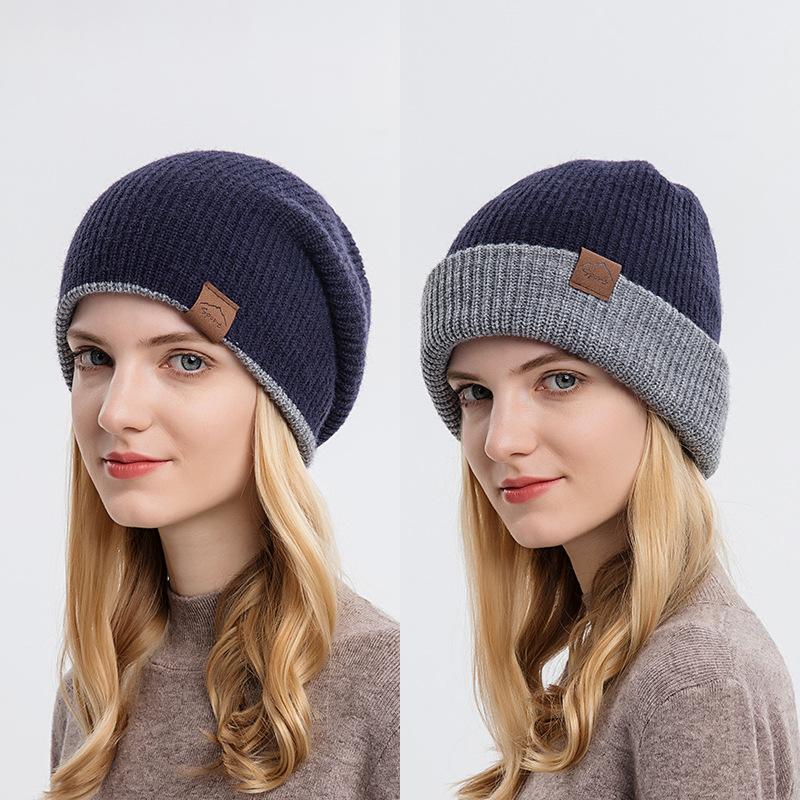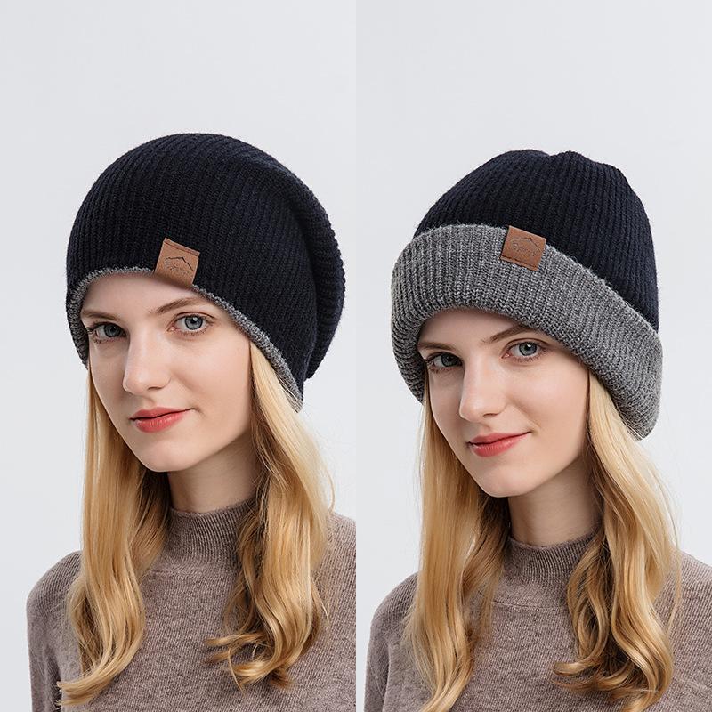 Новые осенне-зимние вязаные шапки однотонные теплые шапки, двусторонние зимние парные шапки можно носить