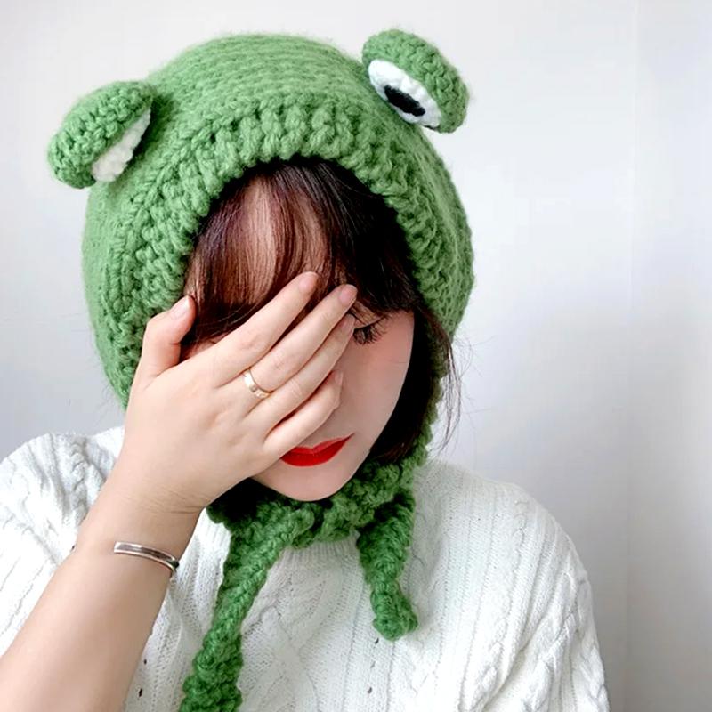 1 шт. Милая модная шапка-лягушка, зимняя теплая вязаная шапка, защита ушей, реквизит для фотосъемки