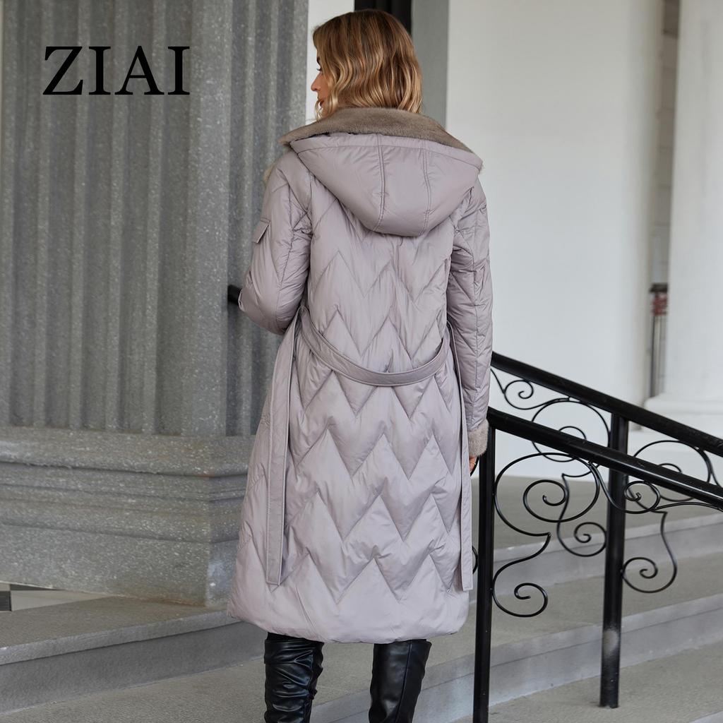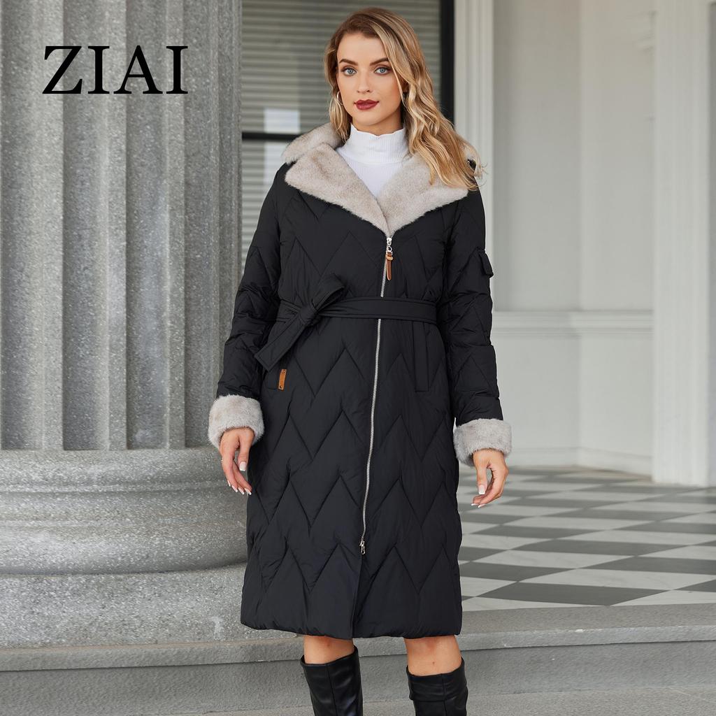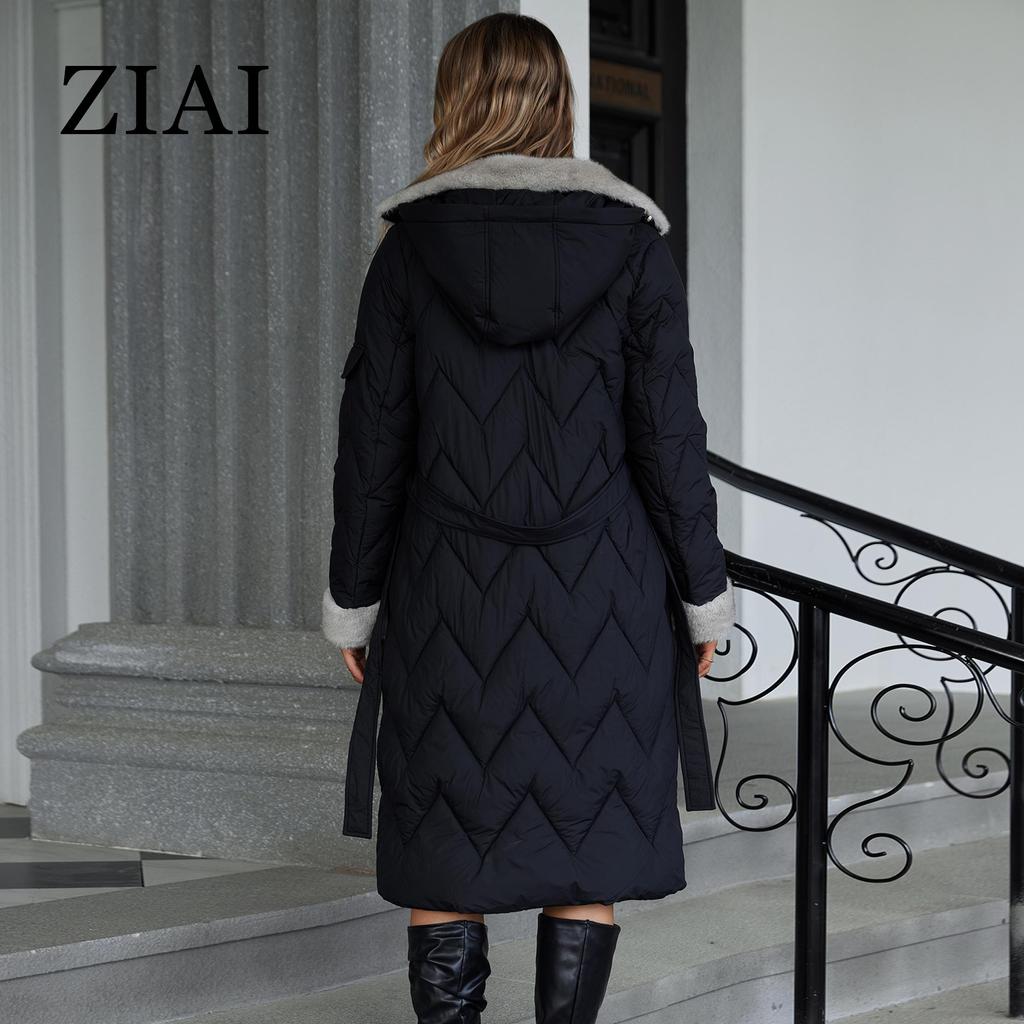 ziai Зимняя женская парка с меховым воротником и капюшоном, поясом, толстое теплое пальто, модная длинная куртка-пуховик, стеганое пальто, женская одежда ZR-20695