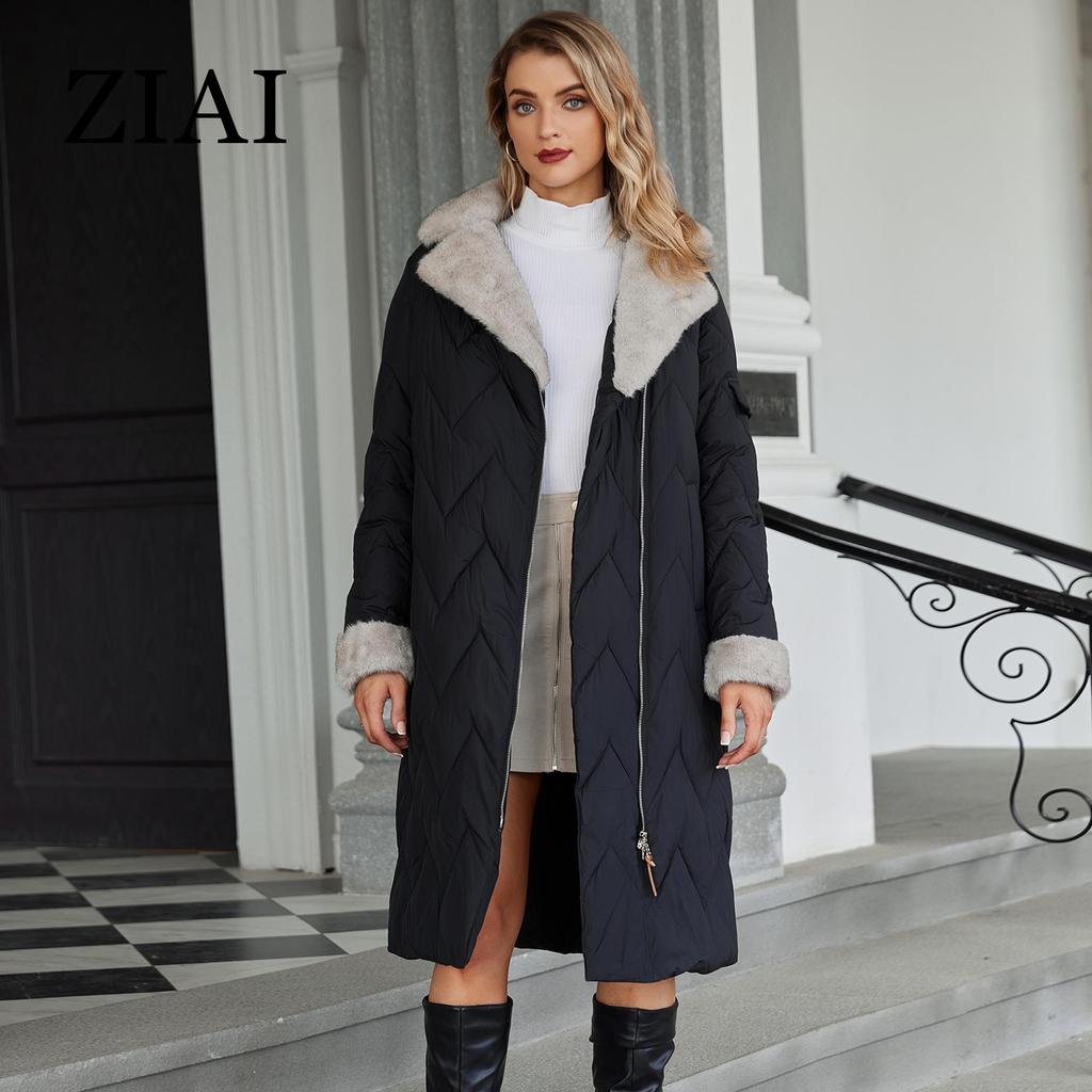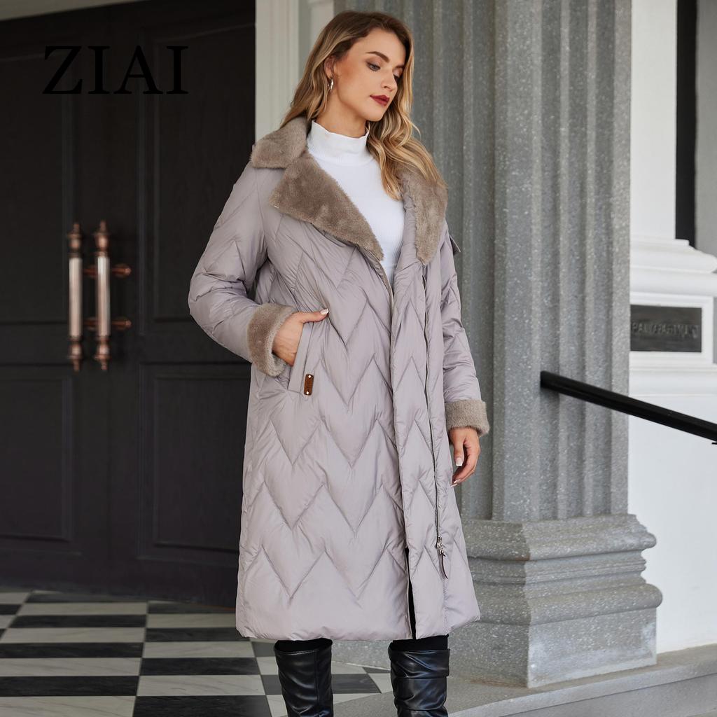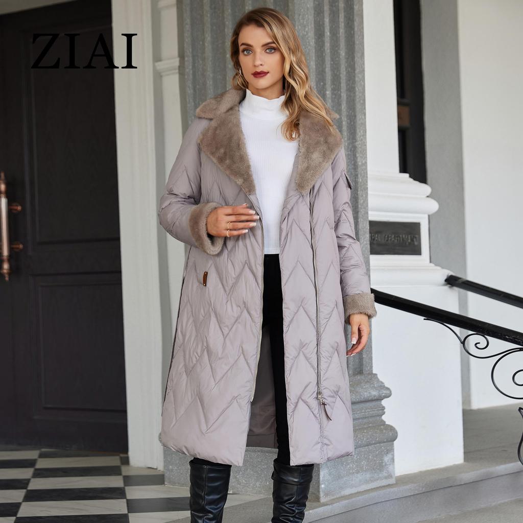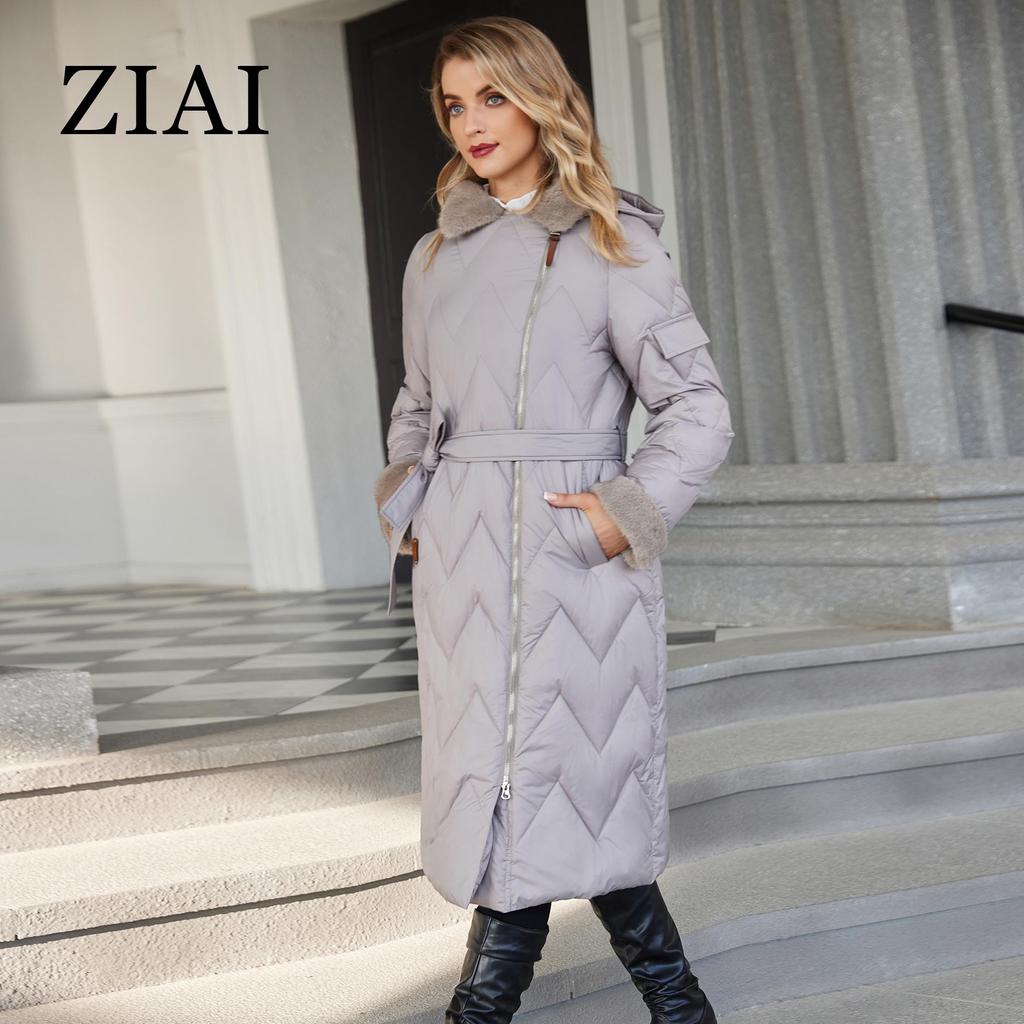 ziai Зимняя женская парка с меховым воротником и капюшоном, поясом, толстое теплое пальто, модная длинная куртка-пуховик, стеганое пальто, женская одежда ZR-20695