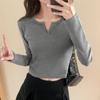 Простая белая футболка с длинными рукавами для женщин, новый внутренний стиль, осенне-зимний топ Hot Girl Short Slim Fit с V-образным вырезом