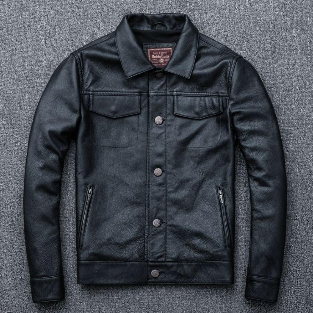 Весенняя мужская кожаная куртка с лацканами из коровьей кожи первого слоя в стиле ретро с локомотивом — купить товар онлайн с бесплатной доставкой по всему миру!