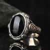 Популярный Moda Punk Con Incrustaciones De Piedras Negras Talladas Anillo Retro Anillo Masculino